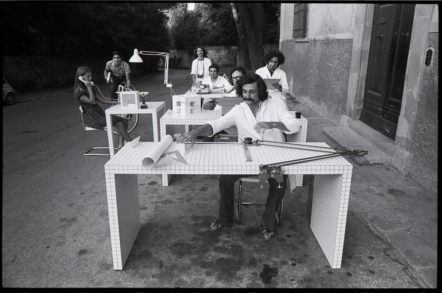 Superstudio, som ble grunnlagt bare få år tidligere, bestod av en gruppe arkitektstudenter fra Firenze. Med Adolfo Natalini ved roret, gjennomførte det unge firmaet en imponerende og omfattende eksperimentering i skjæringspunktet mellom grafisk design, teknologi og arkitektur. De ble ansett som «enfants terrible» i arkitekturen og arbeidet deres ble etterhvert sett på som en viktig del av den radikale designbevegelsen. Et begrep som har sitt utsprang fra 1973 da en gorilla med «Radical Design» på brystet prydet forsiden av et innflytelsesrikt magasin. Begrepet begynte å sirkulere for fullt og arkitekturen måtte gjennomgå en fullstendig definisjonsforvandling. Årene etter var preget av en visjonær utopi som revolusjonerte tenkemåter, stiler og perspektiver. Med sin historie representerer Quaderna på mange måter utopien fra disse årene.