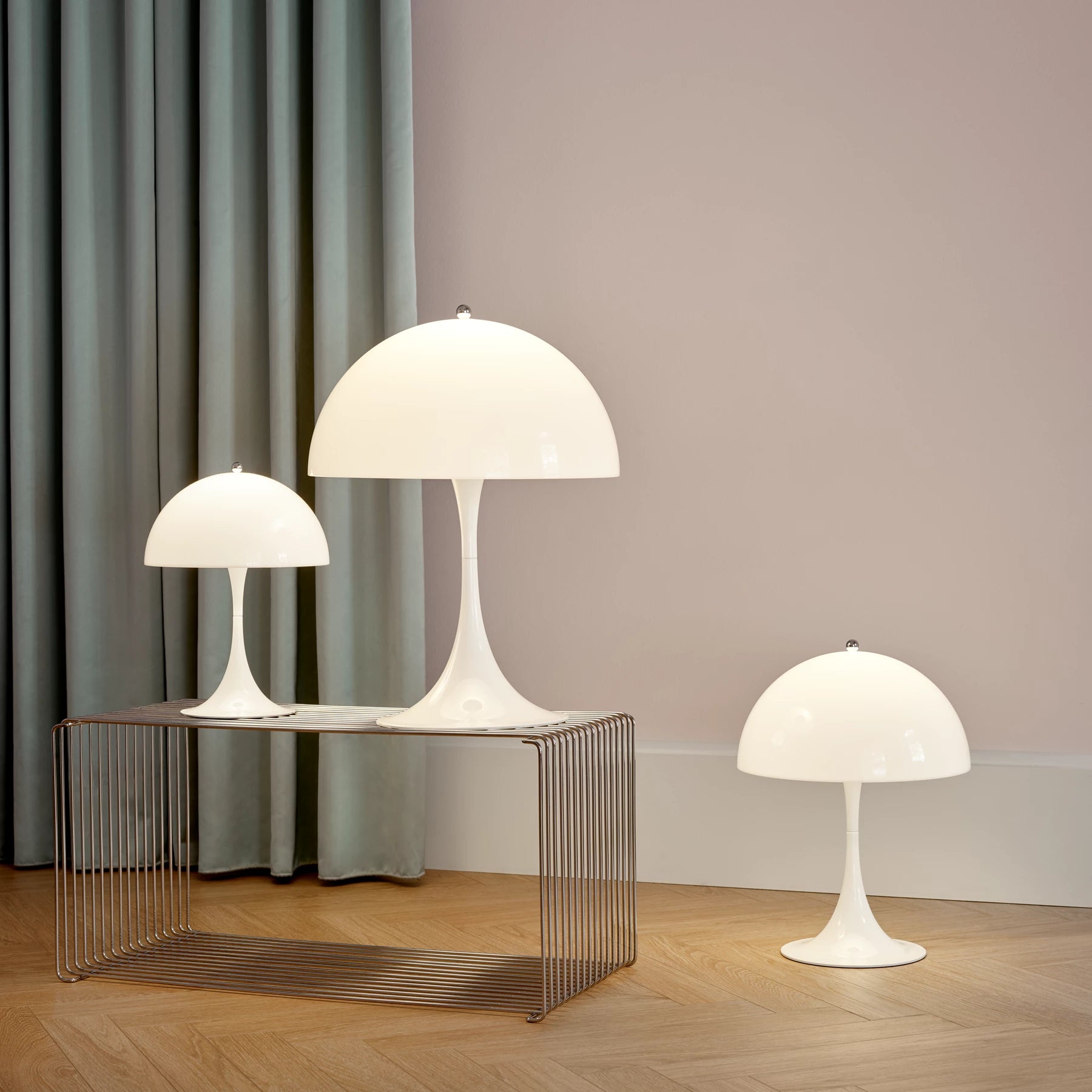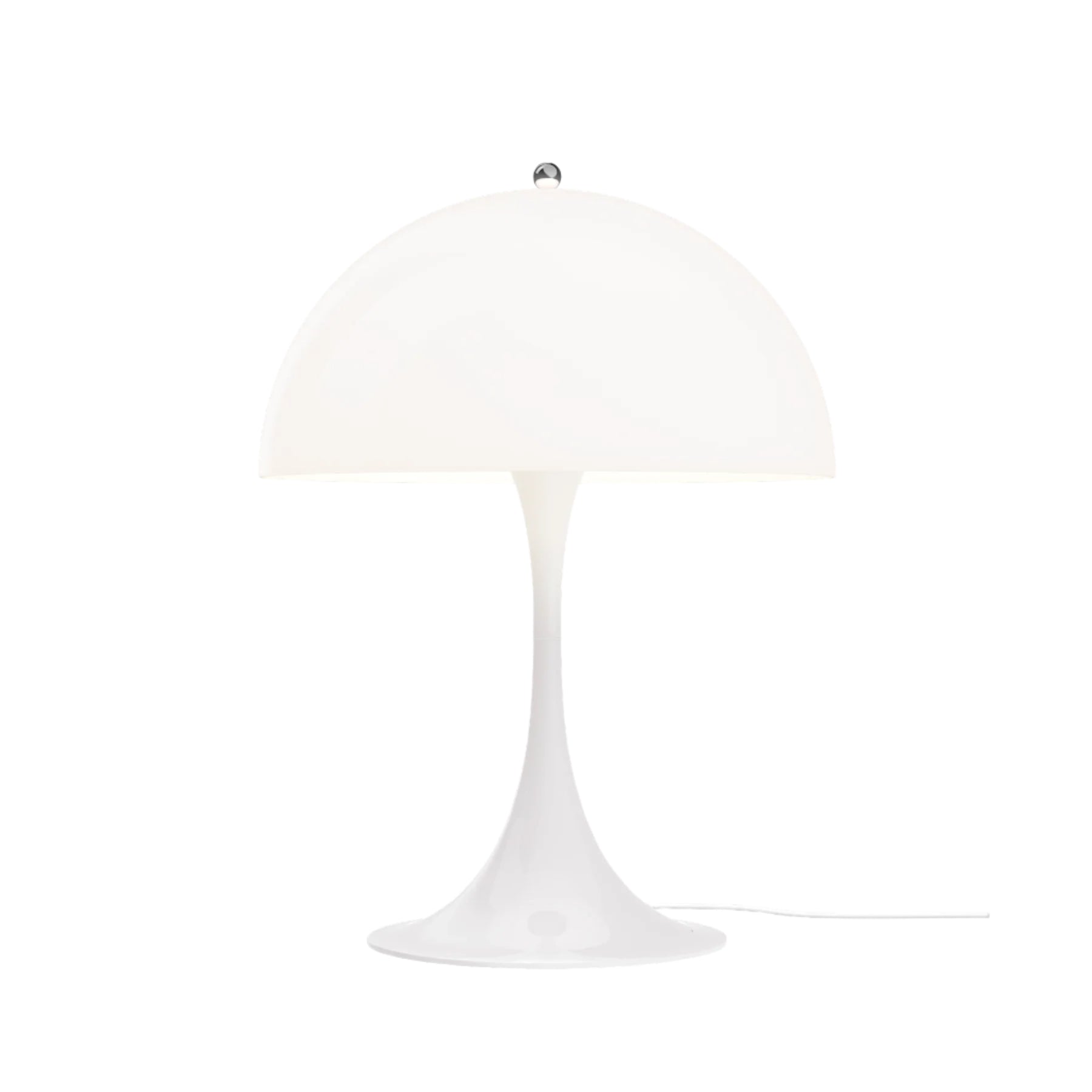 Panthella ble opprinnelig designet i 1971 og har siden blitt anerkjent som en av Verner Pantons viktigste design. Den gjenkjennelige, myke organiske formen til bordlampen, i kombinasjon med den opale hvitfargen, er ikke bare vakker, men også funksjonell, og gir et behagelig diffust og reflektert lys. Den halvkuleformede toppskjermen gir direkte nedadrettet lys, som reflekteres av den trompetformede sokkelen.