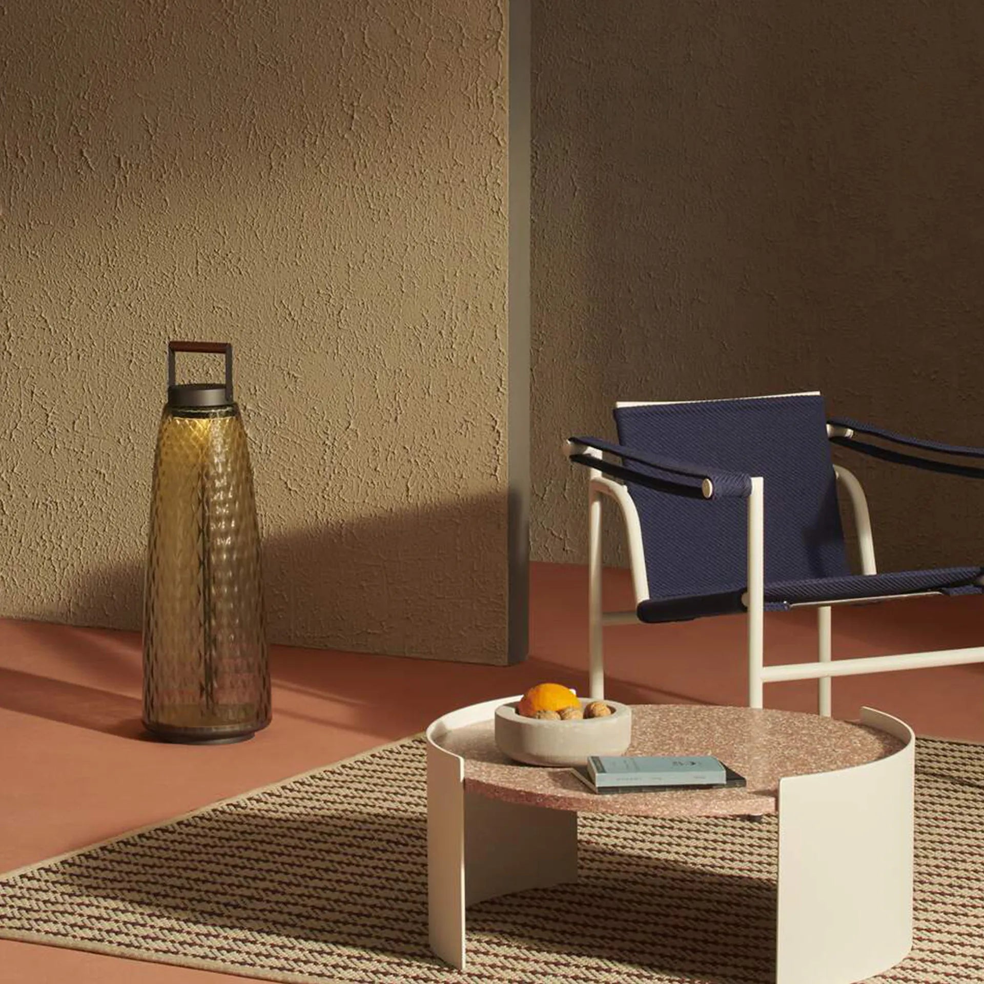 Singapore Sling 094 er en oppladbar utendørslampe fra det italienske merket Cassina. De organiske formene og dekorative materialene skaper en vakker harmoni mellom moderne design og art deco.